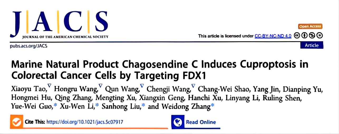 JACS封面 | 烟台新药创制山东省实验室合作揭示海洋分子CHC抗结直肠癌的铜死亡新机制