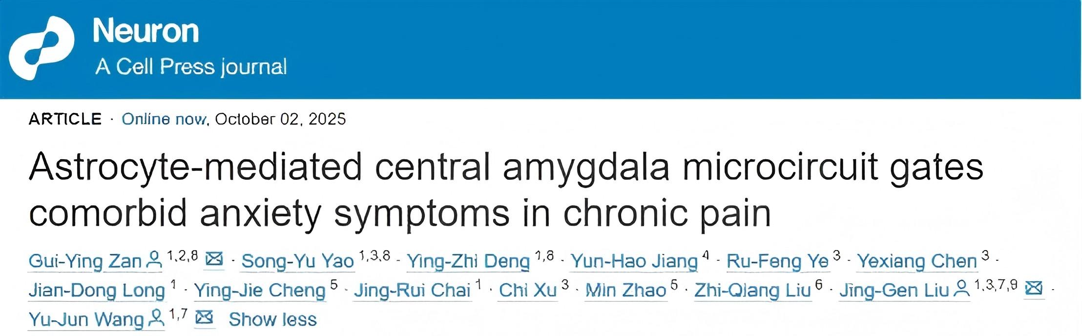 Neuron|烟台新药创制山东省实验室合作揭示星形胶质细胞介导的中央杏仁核微环路调控疼痛并发焦虑的关键机制