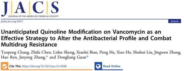 J. Am. Chem. Soc. | 万古霉素的单一喹啉修饰:一种改变抗菌谱、对抗多药耐药性的有效策略